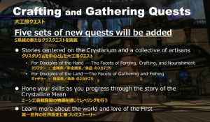 - クラスクエストを5系統にまとめなおす(クラフター:3系統、ギャザラー:2系統)