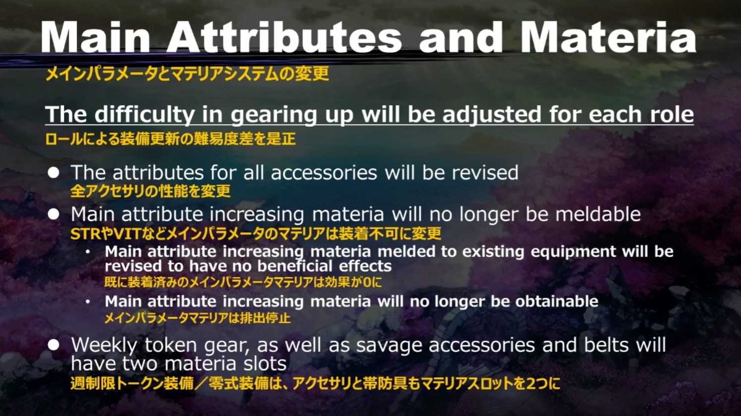 - トークン装備、零式装備のアクセサリ・帯装備のマテリアスロットが1つ→2つに