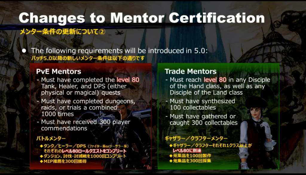 - パッチ5.0以前にメンターになっている場合、新条件を満たしていなくてもパッチ5.0の間はメンターのまま