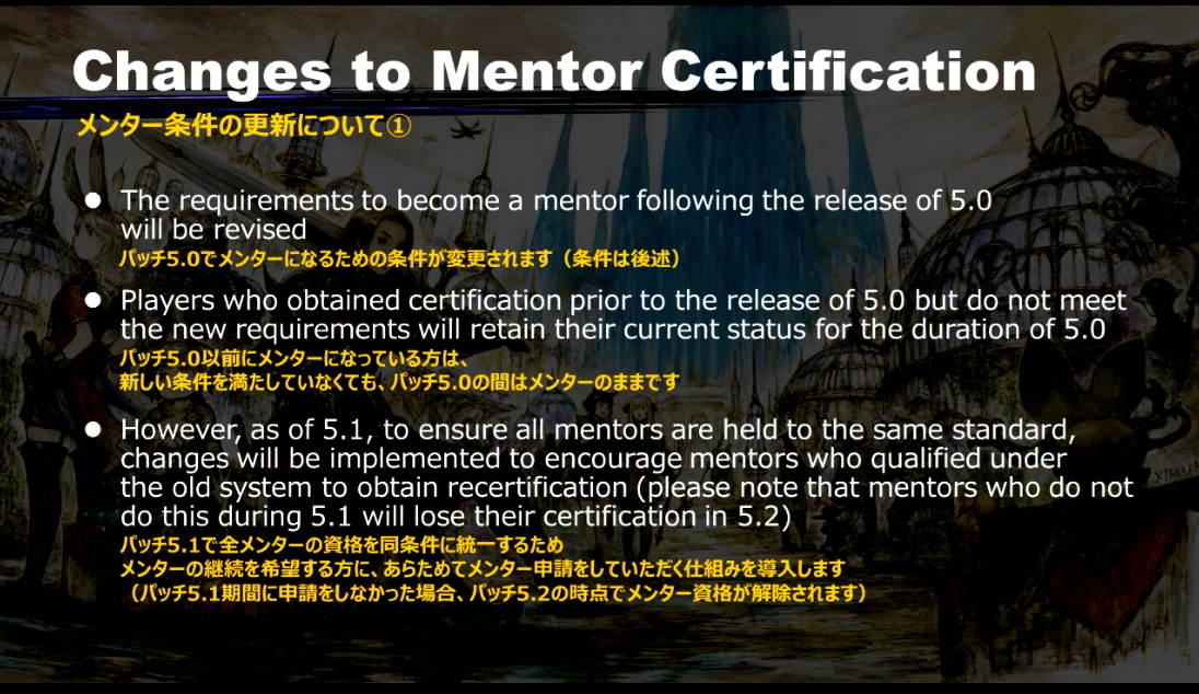 移行期間となっているパッチ5.1期間中にあらためてメンター新生をしなかった場合、パッチ5.2時点でメンター資格が解除されてしまう。