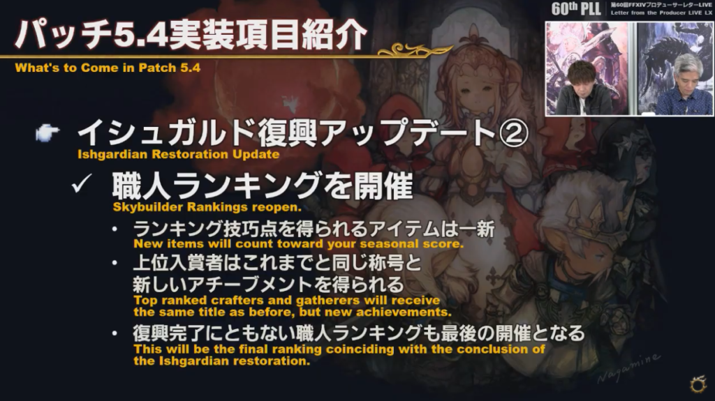 第3回の職人ランキングが開催される。イシュガルド復興が今回で完結なので、関連する職人ランキングも最後の開催となる。