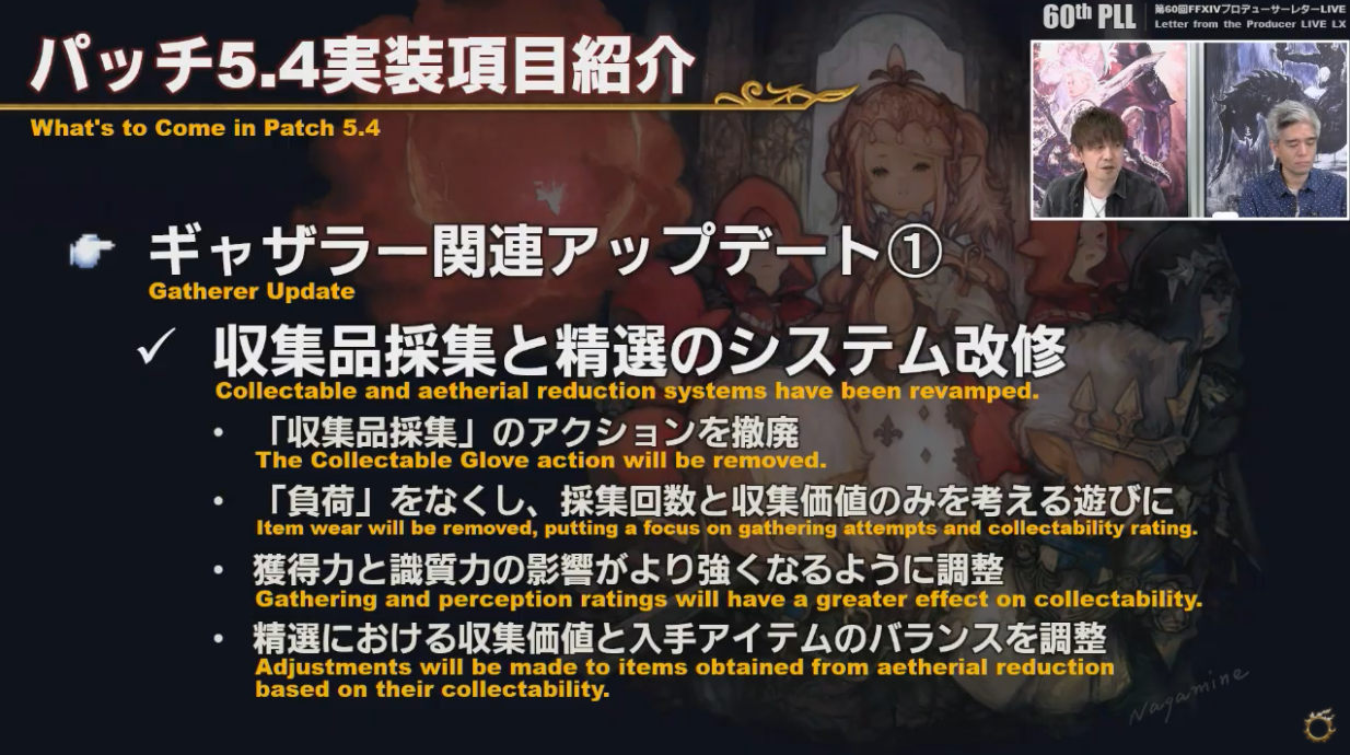クラフターの大規模な改修が落ち着いてきたので、ギャザラーの改修を進めていくとのこと。