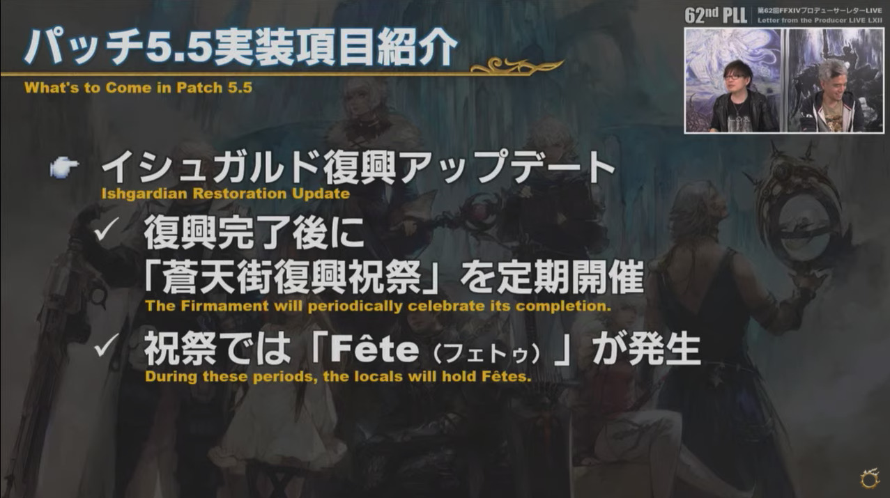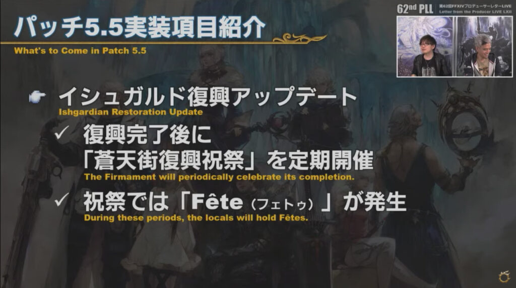 復興そのものは完了したが、参加可能なちょっとしたお祭りが定期開催されるようになる。詳細は次回PLLでのパッチ5.5特集パート2にて。
