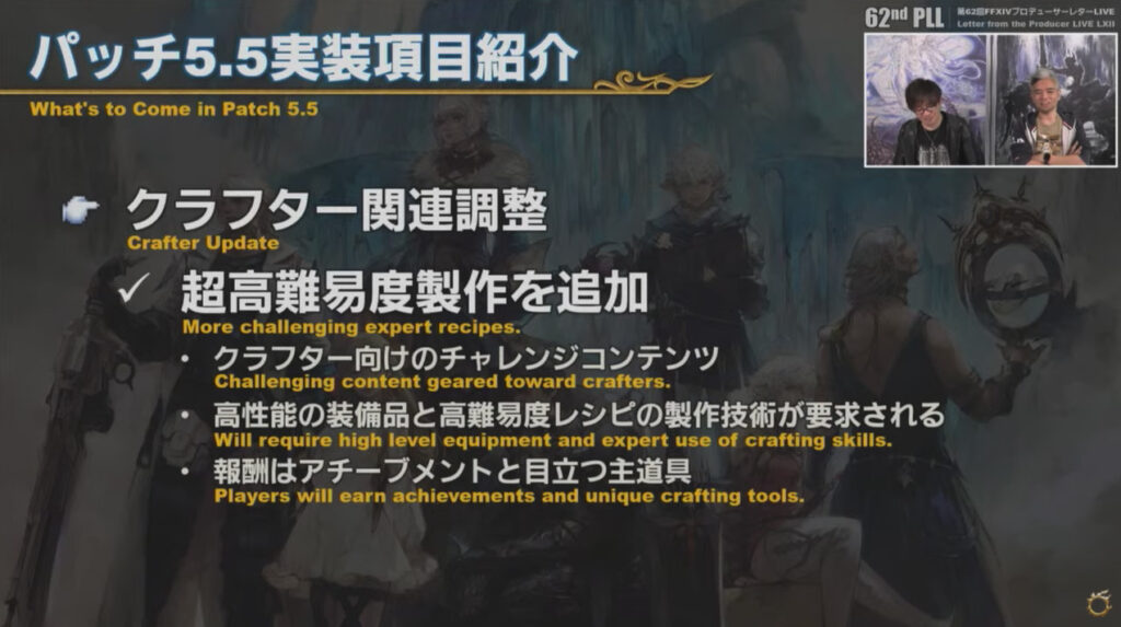 高性能の装備品と高難易度レシピの技術が必要となる、クラフターのエンドコンテンツ。報酬はアチーブメントと目立つ主道具とのこと。