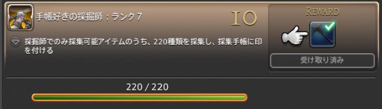 採掘師の採集手帳を220種類以上埋めることで、アチーブメントとともに取得できます。