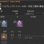 エキスパートレシピ製作ではマイスターアクション「設計変更」が強力なので、できればマイスターで製作したほうが良いのですが、非マイスター状態で制作を行うこともあると思うので、ここではマイスターを外した状態のステータスで検証を行います。