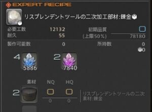 クラフター用のリスプレンデントツールは、「超高難易度製作」と呼ばれる3段階のエキスパートレシピ製作を乗り越えて、ようやく入手することができる貴重なアイテムです。