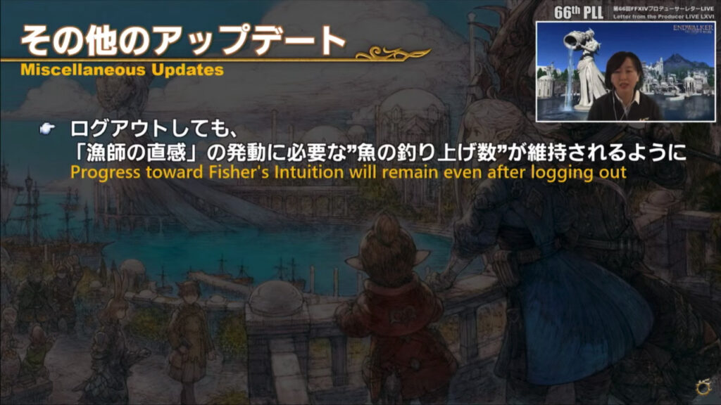 自動ログアウトが一部のヌシ釣りに影響を与えているため、「漁師の直感」に必要な”魚の釣り上げ数”をログアウトしても保持するという対応を行う。かなりスペシャルな対応なので、6.0でないと間に合わなかったとのこと。