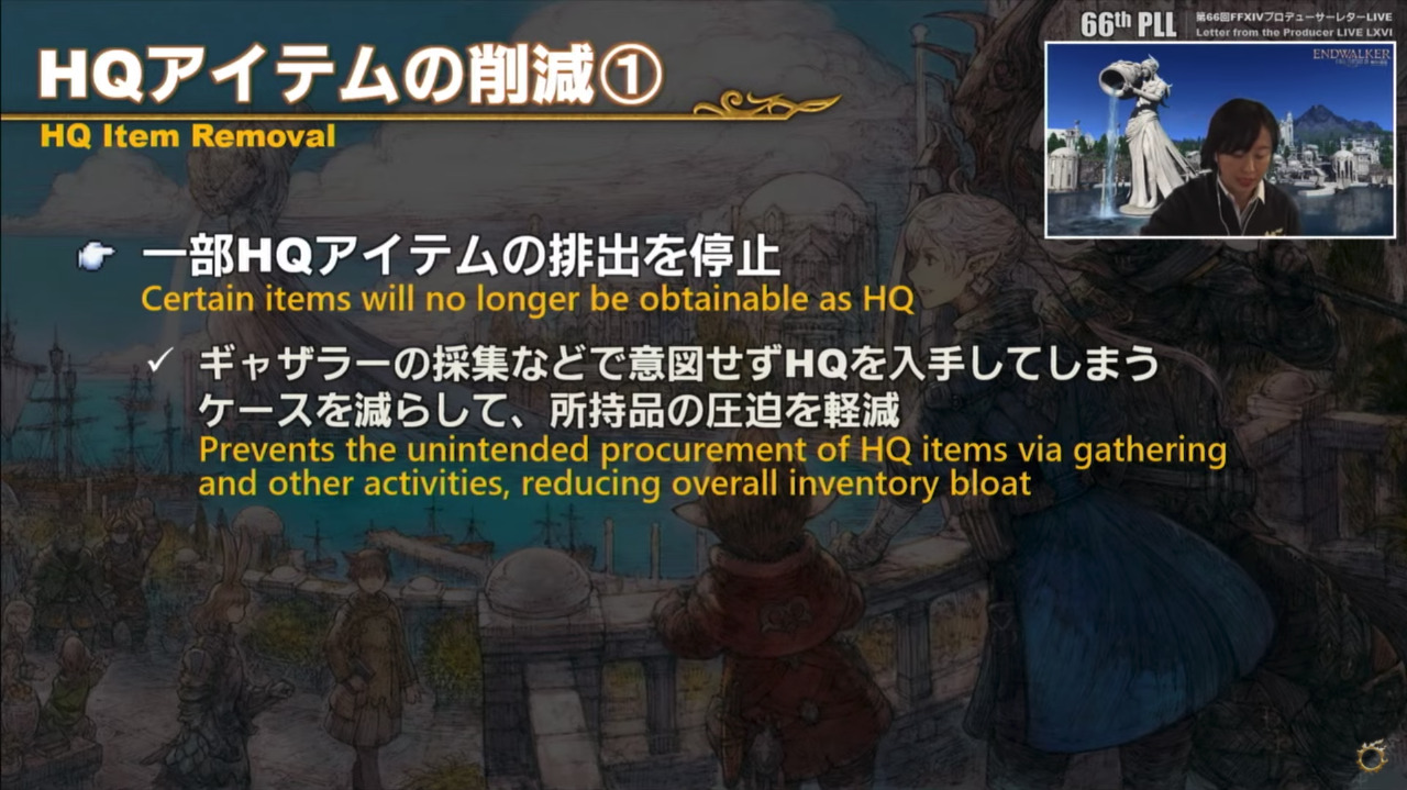 - ギャザラーの採取などで意図せずHQを入手してしまうケースを減らして、所持品の圧迫を軽減