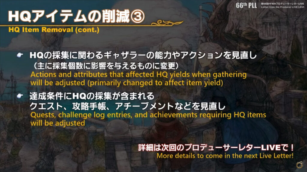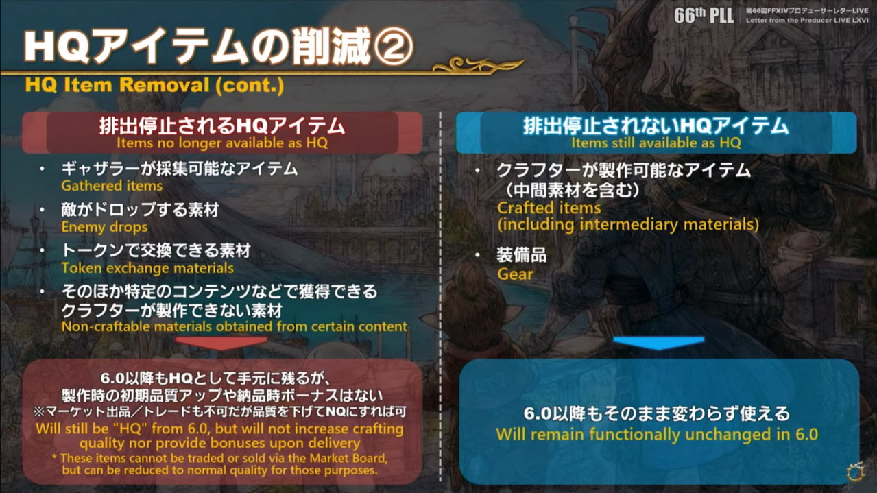 パッチ6.0にて、一部HQアイテムの排出が停止されます。主にギャザラーに関連するアップデートです。