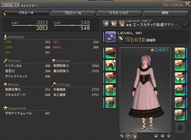 漆黒最終装備からそのまま暁月のレベリングをしてきた場合、細かい禁断内容に個人差はありますが、おおよそこのようなステータスになっているかと思います。