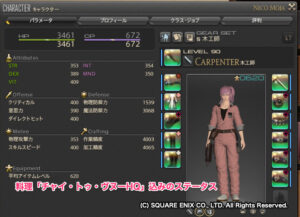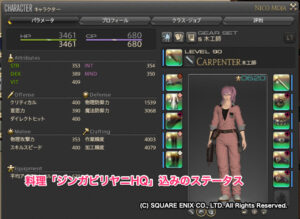 パッチ6.3で実装されたクラフター新式「インダガトル装備」にマテリア禁断を行ったステータスです。