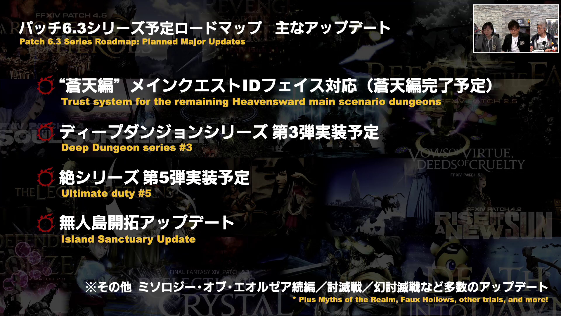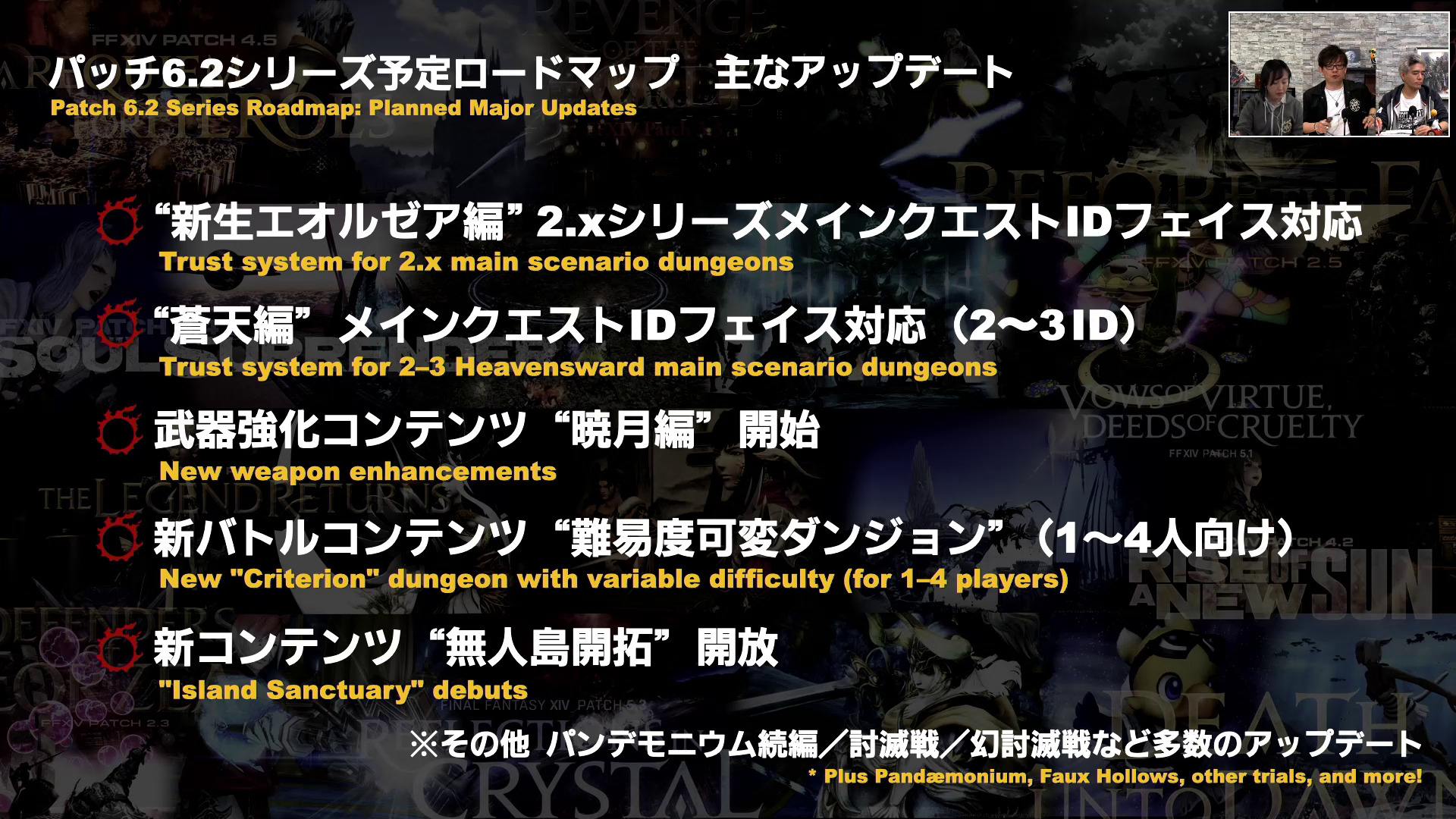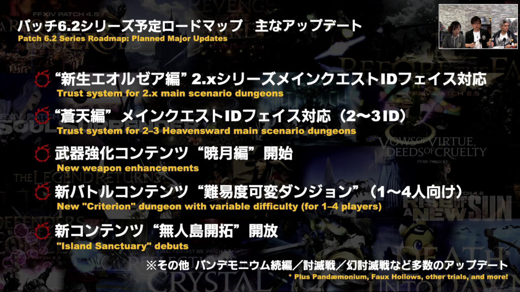 今回長期のロードマップ発表がメインだったので、それぞれの項目に関する掘り下げは殆どありませんでした。ですのでその中から、ギャザクラに関連しそうな項目をピックアップしています。