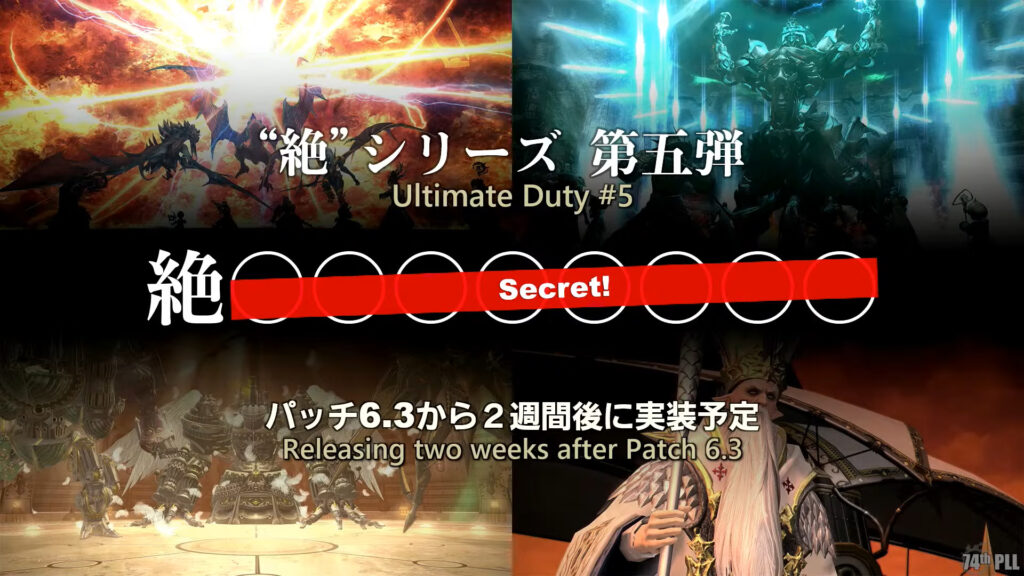 新しい「絶」コンテンツがパッチ6.3から2週間後に実装予定とのことです。詳細情報はまだ公開ありませんでしたが、次回PLLの6.3実装項目パート2をお待ち下さいとのことでした。