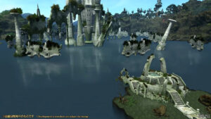 水中でもニームの遺跡が刺さっている景色が描かれています。
