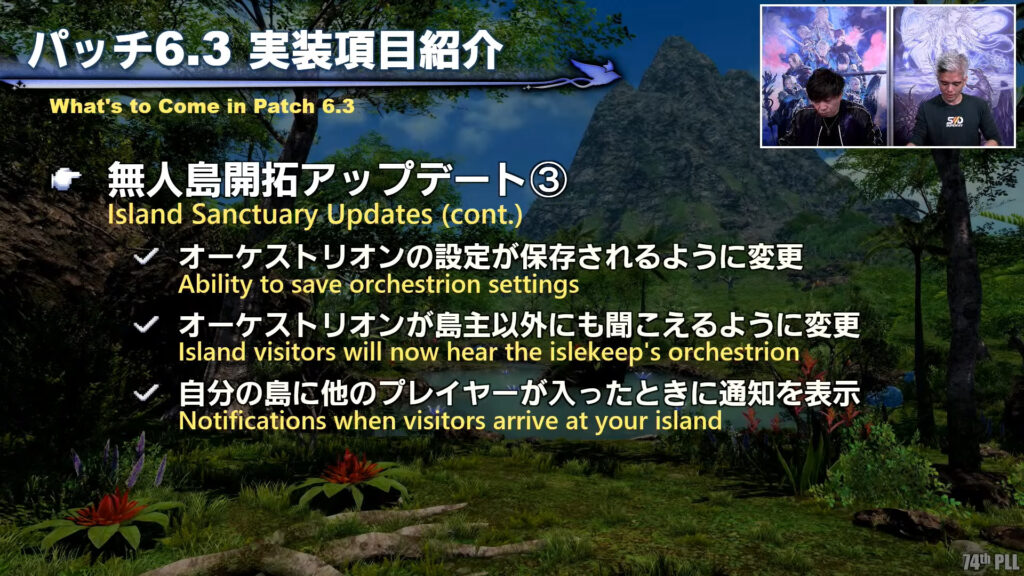 またパッチ6.4に向けて、ハウジングの庭具アイテムを無人島になんとか配置できるように調整を行っているとのことでした。