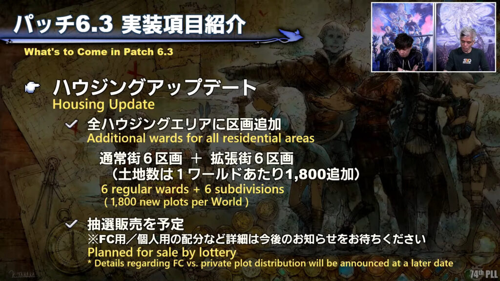 全ハウジングエリアに「通常街6区画 + 拡張外6区画」、土地数としては1ワールドあたり1,800が追加されるとの事です。