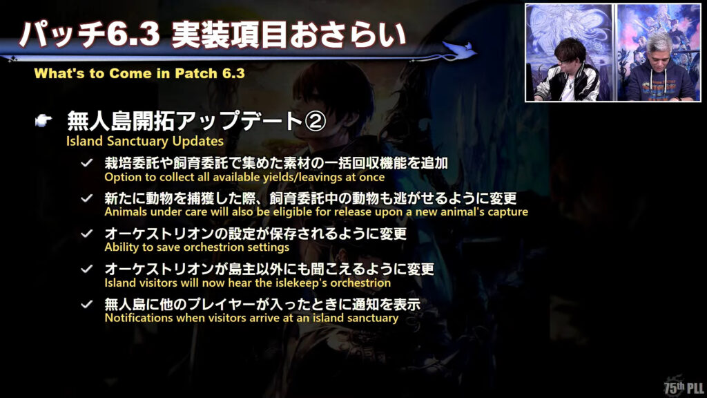 直接ギャザクラに関連する項目ではないので詳細には書きませんが、無人島開拓に新たなランクや目標の追加と、利便性の向上に関するアップデートが行われます。