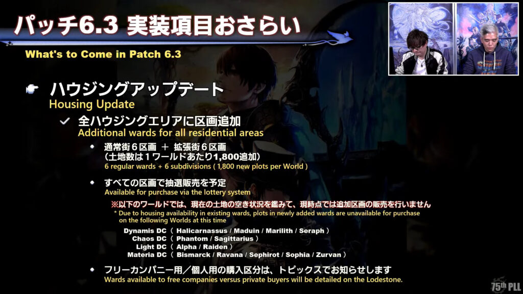 フリーカンパニー用/個人用の土地区分は、今後トピックスでお知らせするとのことです。今後は個人/FCどちらでも応募できるという土地も準備できるとのことでした。