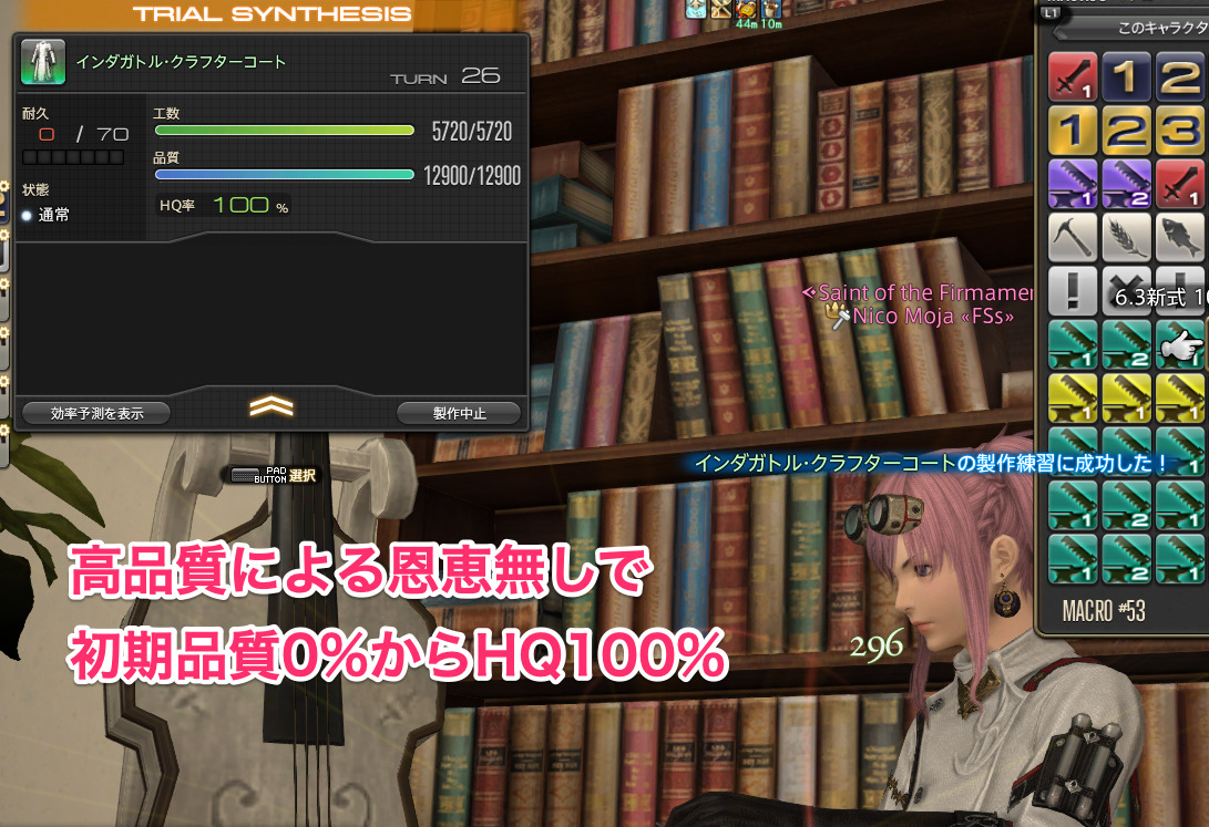 • 1/12:高ステ向け(装備更新あり)のすべてNQ素材から100%HQにできるマクロを追記しました。