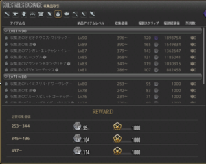 またクラフターのレベリング過程でドワーフ族クエストや蒼天街復興を行っていた場合は、ドワーフ緑硬貨や蒼天街振興券と交換でエクスマテリジャを入手できます。