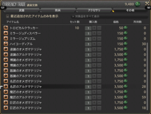 - クラフタースクリップと交換(アルテマテリジャが紫貨500、エクスマテリジャが白貨250)