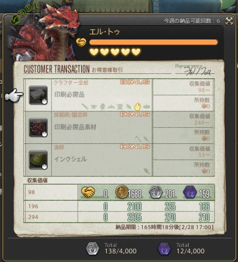 お得意様取引は週に12回という納品回数に週制限があるコンテンツなので、忘れずに毎週納品しましょう。