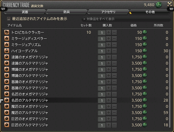 - クラフタースクリップと交換(アルテマテリジャが紫貨500、エクスマテリジャが白貨250)