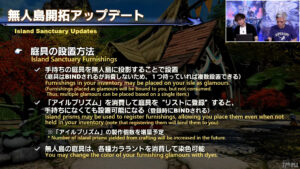 無人島に関してはもうひとつ、今回も「ウソウソの泉」「家庭用ウソウソの泉」(後者は厳密には無人島関連ではないですが)のような、不定性素材精選と高難易度製作が絡んだ高レベルの製作アイテムが実装されるのではないかと思います。