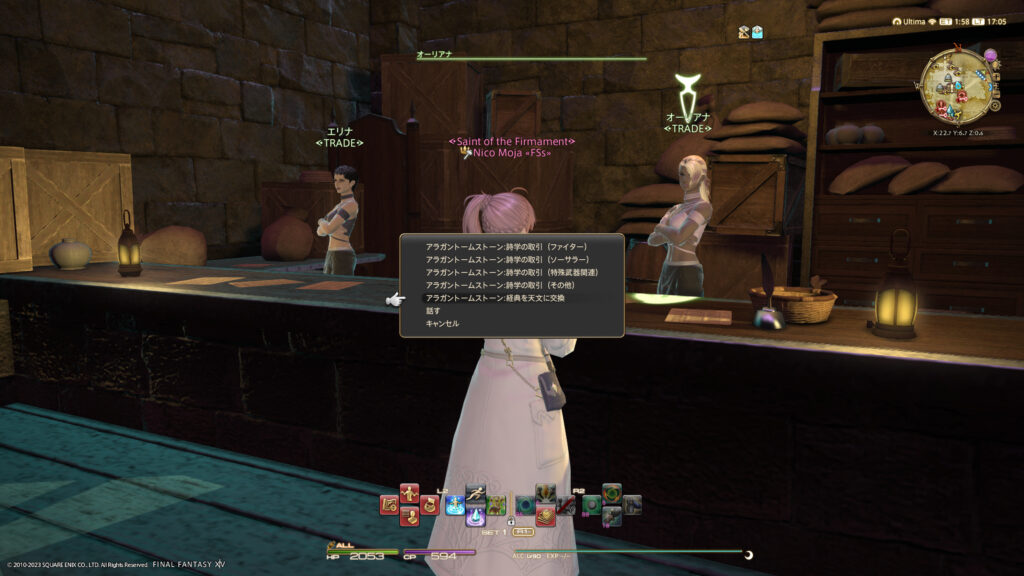 戦闘トークンの交換は、レヴナンツトールのNPC「オーリアナ」から行えます