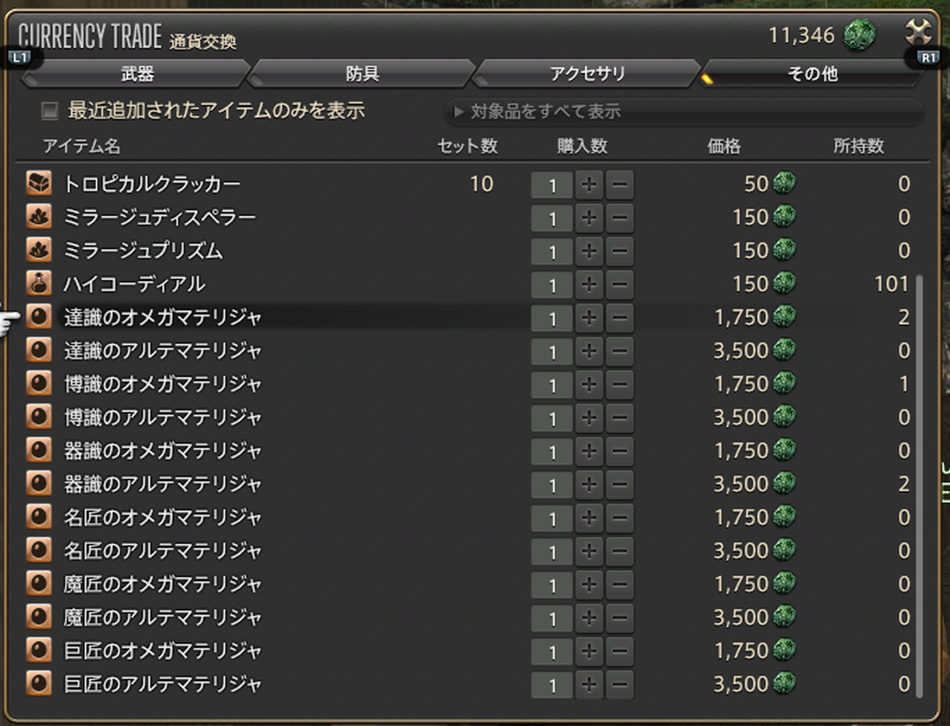 とはいえ、パッチ直後はマテリアが高騰する可能性もあるため、今のうちにある程度の数のマテリアを集めておくことをお勧めします。