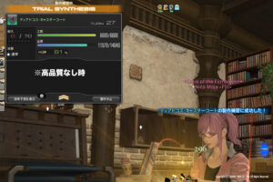 先に紹介したステータスでこのマクロを実行した場合、高品質状態の恩恵を一度もうけなかった場合で品質9427(23%)まで上げることができます。