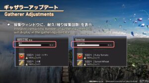 - 採集ウィンドウに、耐久(残り採集回数)を表示