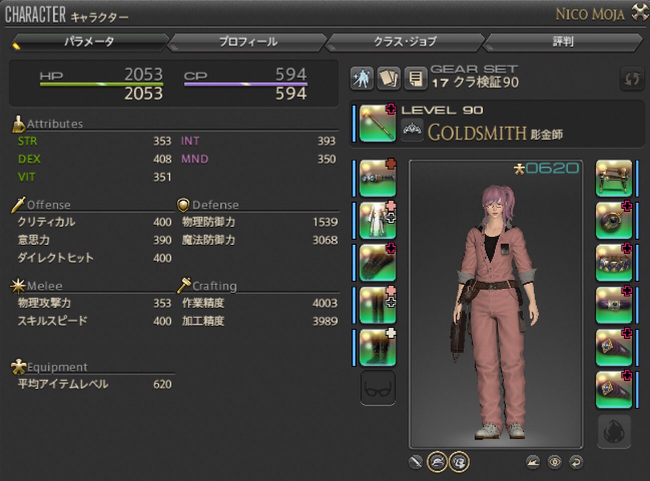 検証時の装備・ステータスは過去記事で紹介済みの、暁月編時点での最高装備「インダガトル装備」ほぼフル禁断のステータスです。