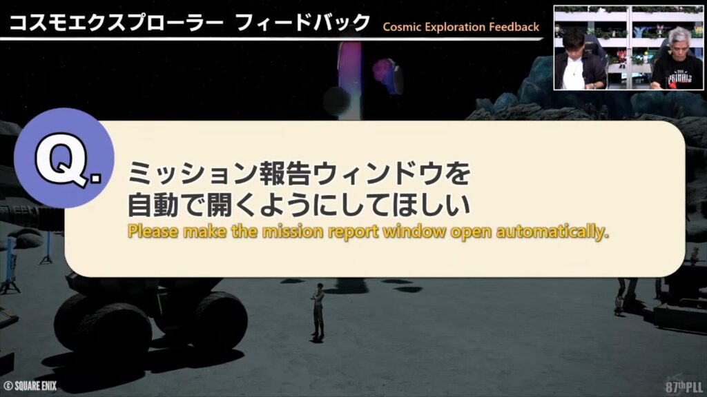 PLLの冒頭で行われた、現在の「コスモエクスプローラー」に関して寄せられたフィードバックへの回答についてまとめます。