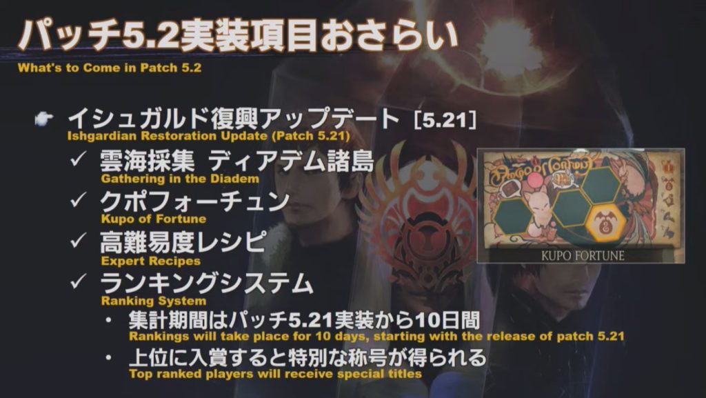 イシュガルド復興のアップデートはパッチ5.21、パッチ5.2の3週間後。