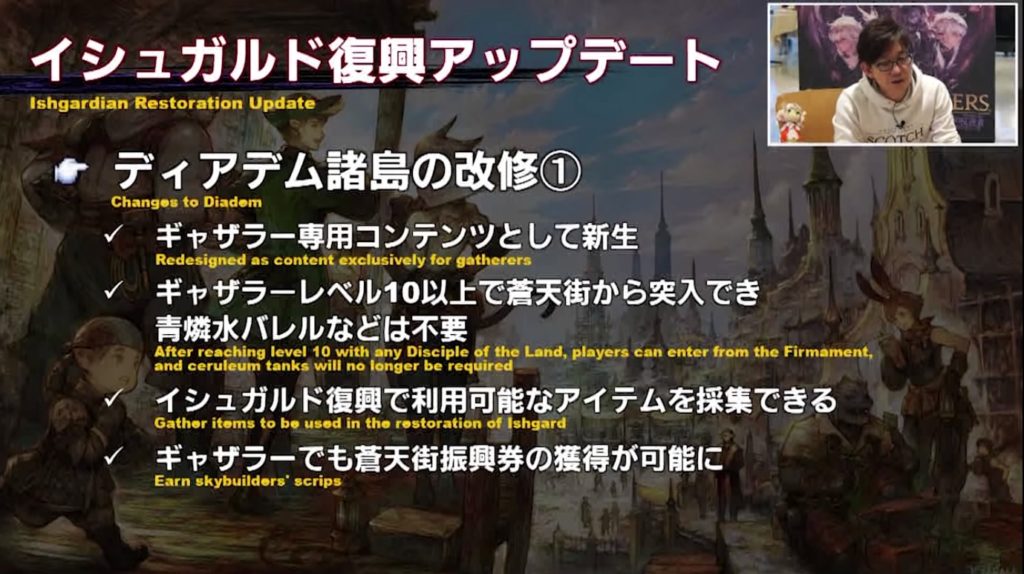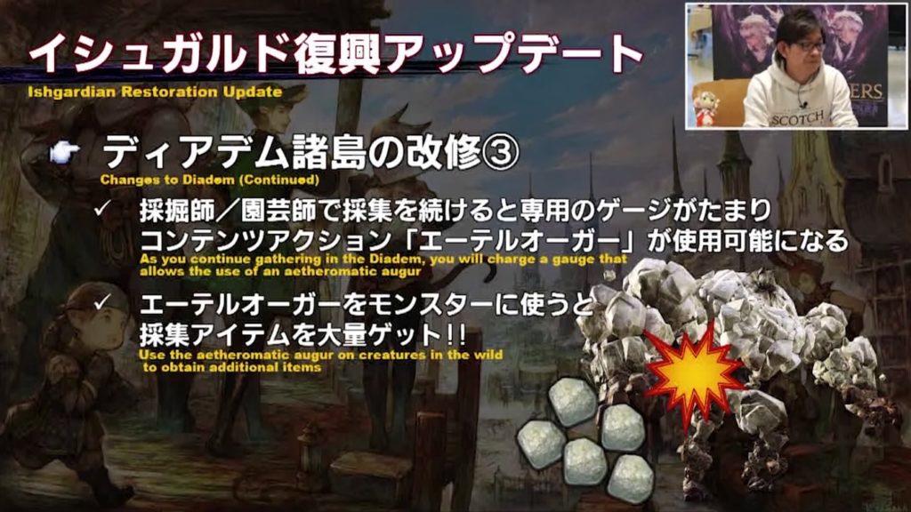 - 今回からギャザラーも本格参戦。ディアデム諸島が「雲海採集」として復活し、採集専用のコンテンツに。