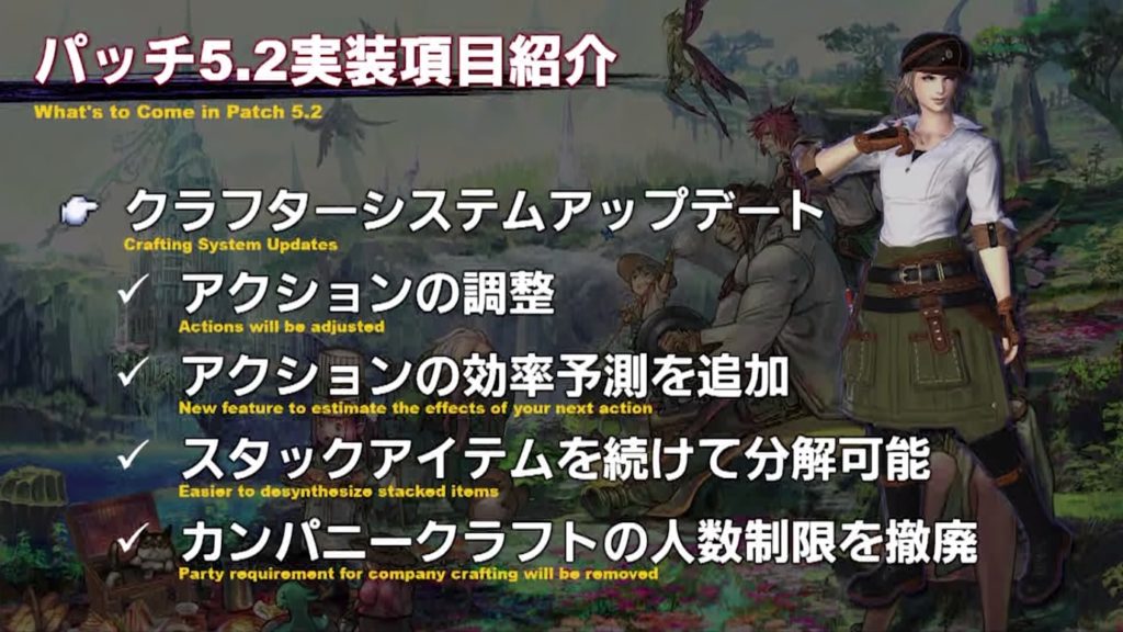 2020年2月18日(火)に公開される、FF14のパッチ5.2「追憶の凶星」のギャザラー・クラフターに関連する情報だけを、ピックアップしてまとめていきます。