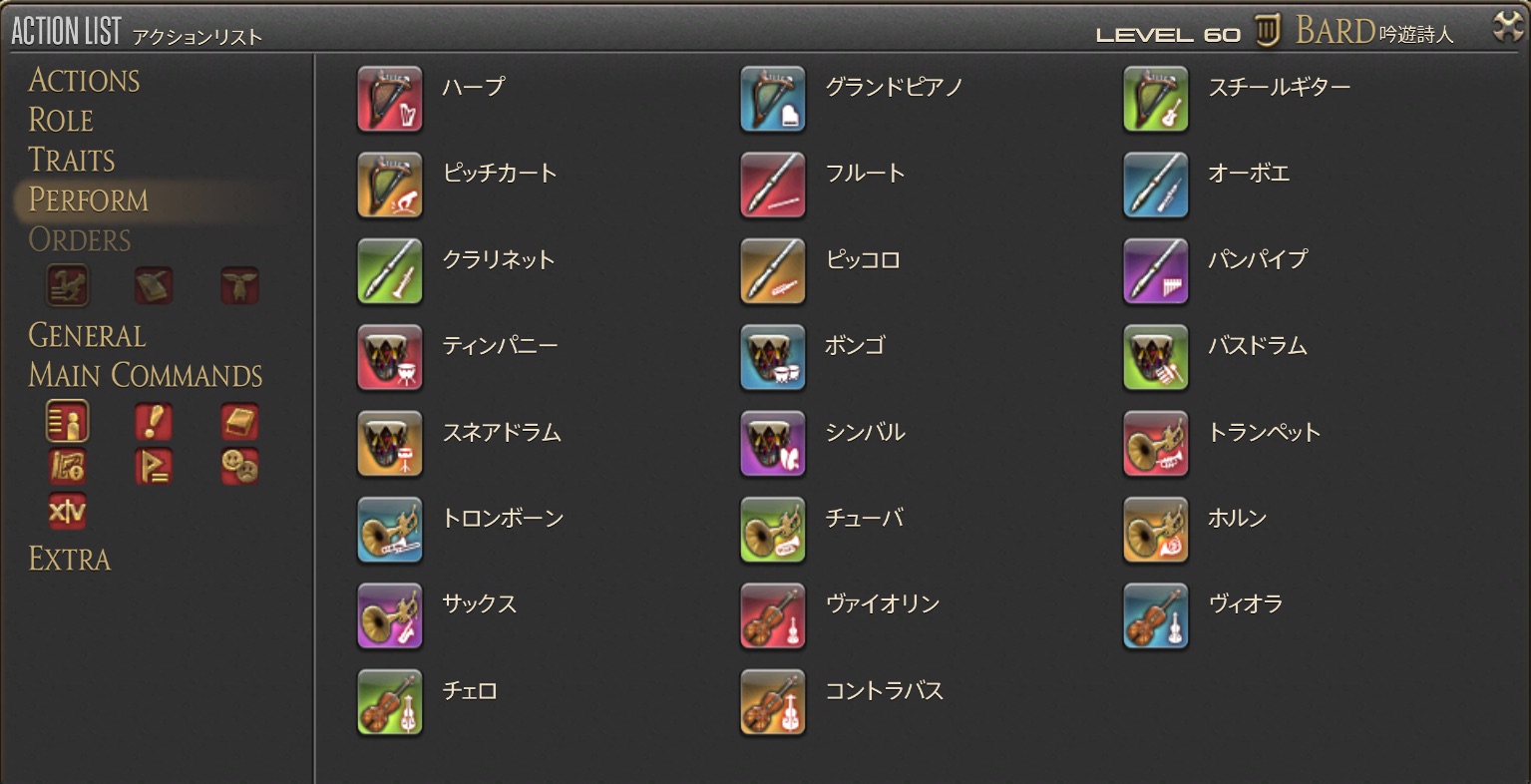 【パッチ4.15】でFF14に実装された、楽器を使って音を奏でる吟遊詩人の専用アクションです。
